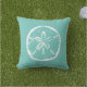 Teal / turquoise blue and white sand dollar beach decor outdoor throw pillow. Cute summer destination design. Coastal sea shell icon. Great for beach wedding decoration on seaside location. Beautiful rustic outside decorations for back yard, patio or terrace, new house. Vintage faded look design.