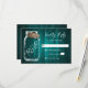 Teal Rustic Wood Mason Jar Burlap Hearts Wedding RSVP Card