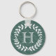 Accessorize in style with this personalized monogrammed keychain. Design features modern laurel wreath leaves and stylish typography initial. Monogram in center is simple to customize. Makes an elegant and useful bridesmaid, groomsmen, and bridal party keepsake gift idea and compliments chic wedding greenery.