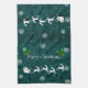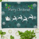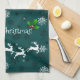 Teal Santa's Sleigh and Reindeer Kitchen Towel