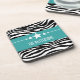 Trendy and modern Sassy Star Zebra Coaster Set featuring a chic black and white zebra print background and a bold turquoise border adorned with a fun star motif. This girly design may be customised with the personalised text of your choosing. Click "Customise It" to find more personalisation options.