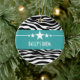 Teal Sassy Star Zebra Ornament