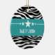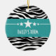 Trendy and modern Sassy Star Zebra Ornament featuring a chic black and white zebra print background and a bold turquoise border adorned with a fun star motif. This girly design may be customised with the personalised text of your choosing. Click "Customise It" to find more personalisation options.