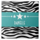 Trendy and modern Sassy Star Zebra Tile featuring a chic black and white zebra print background and a bold turquoise border adorned with a fun star motif. This girly design may be customised with the personalised text of your choosing. Click "Customise It" to find more personalisation options.