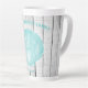 Enjoy your morning coffee with this elegant Teal Scallop Shell Latte Mug. Mug design features a scallop shell and custom text for you to personalise with your family name against a wooden background. Additional home decor items available with this design.