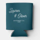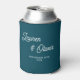 Looking for a unique touch for your wedding reception or bridal shower? Look no further than our Teal Script Minimalist Wedding Can Cooler! Complete with custom names of the bride and groom and the date, this chic cooler adds a personalized flair to your event while keeping your beverages frosty.