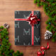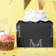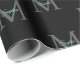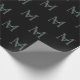 Teal Script Name, Large Grey Monogram on Black Wrapping Paper