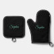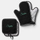 Teal Script Name or Monogram on Black Oven Mitt & Pot Holder Set