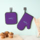 Teal Script Name or Monogram on Deep Purple Oven Mitt & Pot Holder Set
