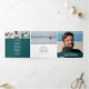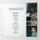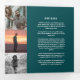 Simple modern graphic funeral program square shaped in a rich teal sea blue green and white. Replace the sample text and twelve placeholder photos with your own special photos and memorial order of service, obituary, reading or poem, and acknowledgements, special quote and personal information details. Other matching funeral keepsake remembrance items are available. This is idea for surfers and lovers of the sea. Design by www.mylittleeden.com
