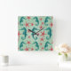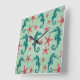 Teal Seahorse Pattern 2 Square Wall Clock