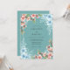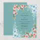 A serene botanical arrangement features delicate watercolor cherry blossoms in shades of peach and pink, set against a muted seafoam teal backdrop. Light blue floral accents and soft green foliage trail gracefully, creating a tranquil atmosphere. Ideal for a romantic spring or summer event, this aesthetic evokes a sense of natural elegance and artistic beauty.