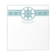 Jot down notes and reminders with a personalised Teal Ships Wheel Personalised Notepad. Notepad design features a teal ships wheel adorned with an anchor lined banner. Additional matching stationery items available with this design as well. If you need assistance with personalisation, please contact me directly.