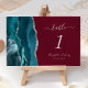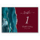 Teal Silver Agate Burgundy Wedding Table Number