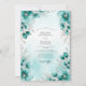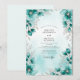 This design showcases a breathtaking arrangement of watercolor blooms in shades of teal and turquoise. Shimmering silver-grey foliage and delicate sprigs surround the center, offering a sophisticated and frosty aesthetic. The ethereal anemone-inspired flowers and soft background wash create a serene mood.