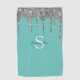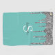 Teal Silver Glitter Drips Sparkle Monogram Name Golf Towel