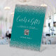 Teal Silver Glitter Wedding Cards Gifts QR Code Pedestal Sign