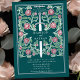 Set the tone for your medieval fantasy wedding with a bold invitation design—a grand sword surrounded by florals against a teal background. Perfect for couples dreaming of an epic, romantic celebration. Personalize it for your needs. NOTE: The silver featured in this design is NOT real foil.