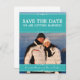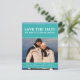 Modern and elegant Simple Chic Photo Save the Date Postcard featuring sleek borders in turquoise and deco style embellishments in white. This stylish save the date postcard is easy to customise with a photo of the happy couple and wedding details. Click "Customise It" to find more personalisation options.