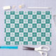 Teal and white snowflakes alternate on chequered white and blue-green squares to create a stylish geometric pattern perfect for the Christmas holiday.
