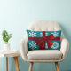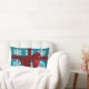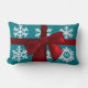 Teal Snowflake Monogram Red Bow Lumbar Pillow