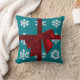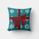 Teal Snowflakes Red Bow Christmas Throw Pillow