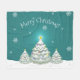Keep warm on chilly holiday evenings with this whimsical Teal Snowy Christmas Tree Fleece Blanket. Blanket design features a trio of snow covered decorated Christmas Trees against a teal background and falling snowflakes. Additional gift and holiday items available with this design as well.