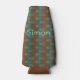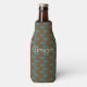 This bottle cooler has a mid-century modern design of teal ovals connected by teal lines with light green circles all on a field of brown. Want different colours? Message me.