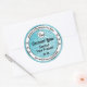 Make a lasting impression with this elegant and modern product label design featuring a glamourous teal coloured small to large glitter graphic with sparkling stars. The pretty white circle border matches with a silver shimmery frame and diamonds.