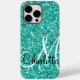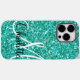 Teal sparkling glitter monogrammed Case-Mate iPhone case