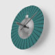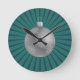 Trendy and stylish Starburst Stripes Ornament Holiday Wall Clock featuring a dynamic starburst in teal and Christmas ornament adorned with snowflakes in silver. Easy to customize, simply personalize with the text of your choosing. Click on the "Customize It" button for more personalization options.