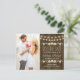Add your favourite engagement photo or picture to this rustic string of lights save the date postcard that is part of a fall floral rustic string of lights wedding invitation set in teal aqua mint blue, coral, green, brown, white, yellow and brown hues with a beautiful wood look background reminiscent of a wooden fence and or barrel. An autumnal laurel wreath composed of acorns, berries, sunflowers, tulip rose and white blossoms sit on a leafy branch. The words Save the Date is flanked by two coral hearts. Perfect accompaniment for an outdoor fall, country, farmhouse, barnyard or rural chic themed wedding. Add a special message for your guests on the antique vintage parchment look background on the back of the std. The charming twinkle and fairy lights with a bokeh effect look bright, warm and inviting. Artwork © Chrissy H. Studios, LLC. All rights reserved.