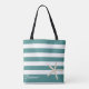 Teal Stripe Starfish Personalised Tote Bag