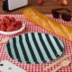 A Black And Teal Striped Elegant Paper Plate For Any Type Of Party