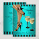 Teal Stripes Black Shoes Wine Glass Birthday Party Invitation