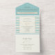 Bright, breezy, and bold—this modern retro all-in-one wedding invitation features pastel teal watercolor stripes with a clean layout, ivory background, and elegant gold rope heart detail. Designed in a convenient seal and send format, it includes RSVP and details sections in one easy-to-mail piece. Perfect for beach, coastal, or summer weddings with a playful, contemporary vibe.