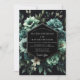 Experience dramatic romance with this lush, moody botanical design. A sophisticated palette of deep teal, seafoam green, and cream blossoms pops against a dark background. The exquisite floral arrangement features painterly peonies, roses, and unique succulents for an unforgettable and elegant atmosphere.