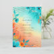This vibrant design features a striking blend of teal and warm peach hues, evoking a sunny day by the shore. Delicate teal anemones and lush tropical leaves bloom alongside soft orange foliage, creating a rich watercolor effect. The background incorporates a unique wavy texture reminiscent of ocean ripples.