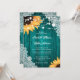 Teal Sunflower Wood Floral Lace Wedding Invitation