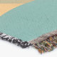 A quality printed throw has its advantages. This is a much finer weave throw than its loopier cousins, and though lighter, it is worth the investment for custom room accessorizing. The back is much prettier than the typical brown, and the fringe on the long sides very vivid, the selvage nicely done. Before photographing, I washed the throw in cold water, delicate, with a thicker woven throw the same size. On tumble dry low, this throw was dry in half the time as the other. This is a very practical quality if you use throws for furniture covers or to wrap up in frequently. The sleekness of the fabric makes it a great layer for accenting or protecting without the feeling of sitting on too much stuff. Perfect for napping or when you feel a light chill coming on. The color printing is beautiful and on this fabric, matched the design and color of my Photoshop image. This is an advantage for blending room fabrics and colors. The fringe on the short sides prints the colors from the design image and therefore varies from the side fringe. I streaked a white fractal line through the plaid pattern to give the illusion of weaving. This printed as crisp as an illusory thread, and put some white in the short side fringe, showing another advantage of print vs loomed- for artistic purposes, line lines, detail, and color integrity can be planned and preserved. My loomed throws have color limitations and more of a needlepoint texture. Print throws reproduce an exact image. The throw felt a little stiff straight out of the package, but this went away in the first delicate wash. Of course I searched the wash water for ink or bleeding and there was none.