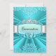 Teal Tiara Damask Quinceanera Invitation