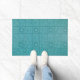 This design is based on a pattern created by William Morris (1834–1896), who is especially famous for his association with the Arts and Crafts Movement. It shows a repeated sequence of squares in a blue-green (or turquoise) colour with flowers in some of the squares. The pattern is sometimes known as a "diaper", because that is the technical term used for a regular diamond or square pattern. The original design was created by William Morris in 1870.