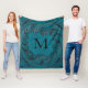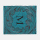 Teal Tooled Faux Leather Western Floral Decor Fleece Blanket