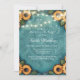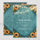 Elegant teal tooled leather design with a bright sunflower border and embossed scrollwork centre, and with a bright string of lights. Perfect for rustic, western, or boho-themed invitations, accessories, and party supplies.