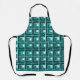 This apron has a geometric design made from Ls in shades of teal laid in different directions repeating across the design.