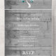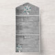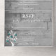 Invite guests to your upcoming wedding with a Teal Tree of Hearts All in One Wedding Invite. Invite design features a grey wooden background adorned with a tree with blooming hearts on its branches with a perforated RSVP card.  Personalise with the groom and bride's names along with the wedding date and location. Additional wedding stationery available with this design as well.