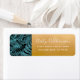 Present your best self, with Hawaiian tropical flair, whenever you use these chic, striking, stylish, modern, custom name return address labels. Crisp, white handwritten script typography overlays a faux gold foil panel next to a graphic, elegant, tropical palm leaf pattern of dusty teal blue gradations on black. Adds a chic, professional, and stylish statement to your correspondence.