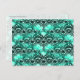 Teal Turquoise Blue and Black Lace Damask Pattern Postcard