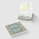 Teal Turquoise Blue Grey Brown Hip Bohemian Art Stone Coaster