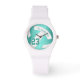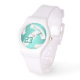This sporty girls' volleyball watch features a pretty turquoise / teal and white volleyball graphic that has an artsy floral kaleidoscopic pattern blended with the non-white volleyball panels - her name and jersey number are customisable - by katz_d_zynes